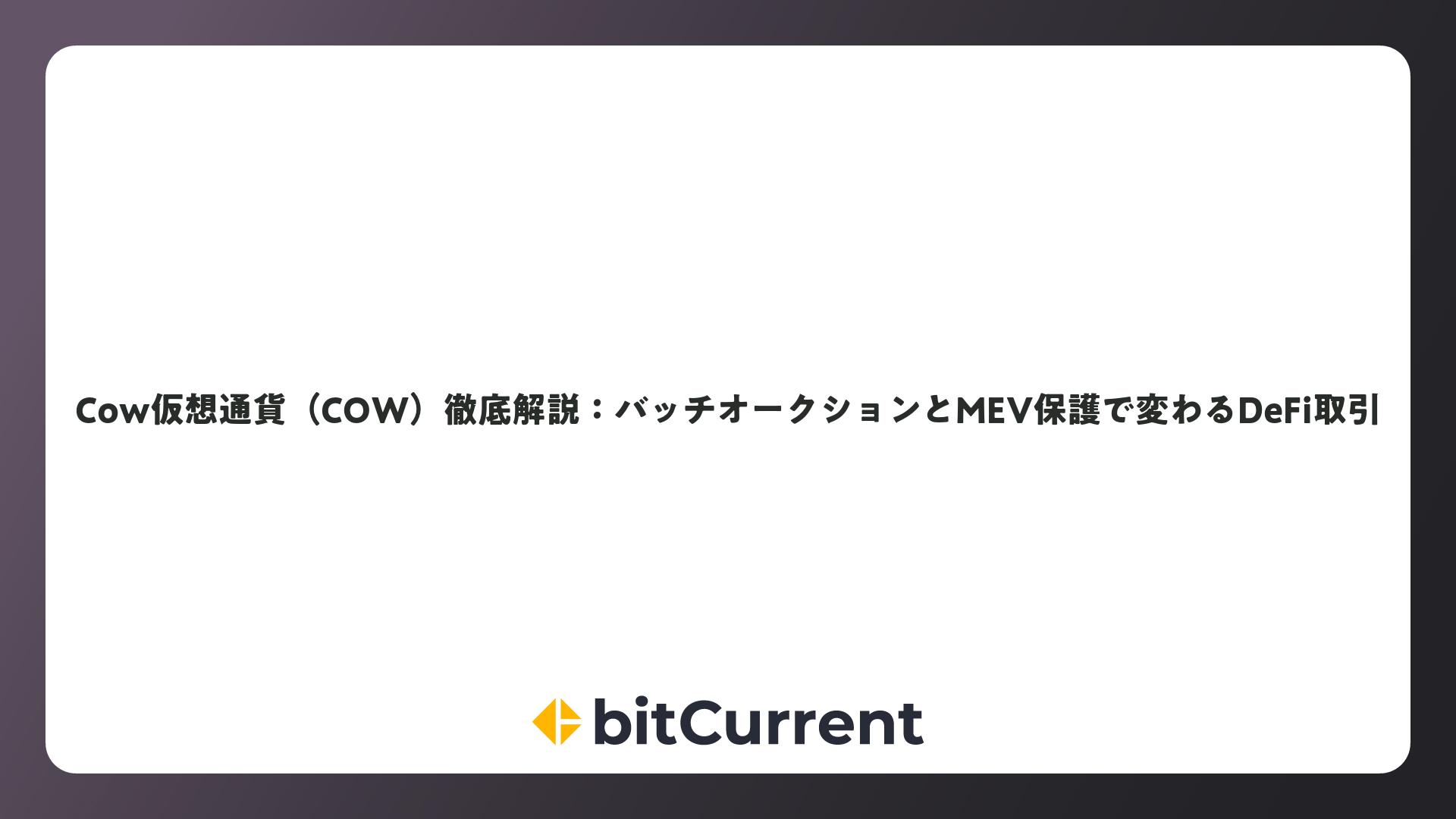 Cow仮想通貨(COW)徹底解説:バッチオークションとMEV保護で変わるDeFi取引をまとめました