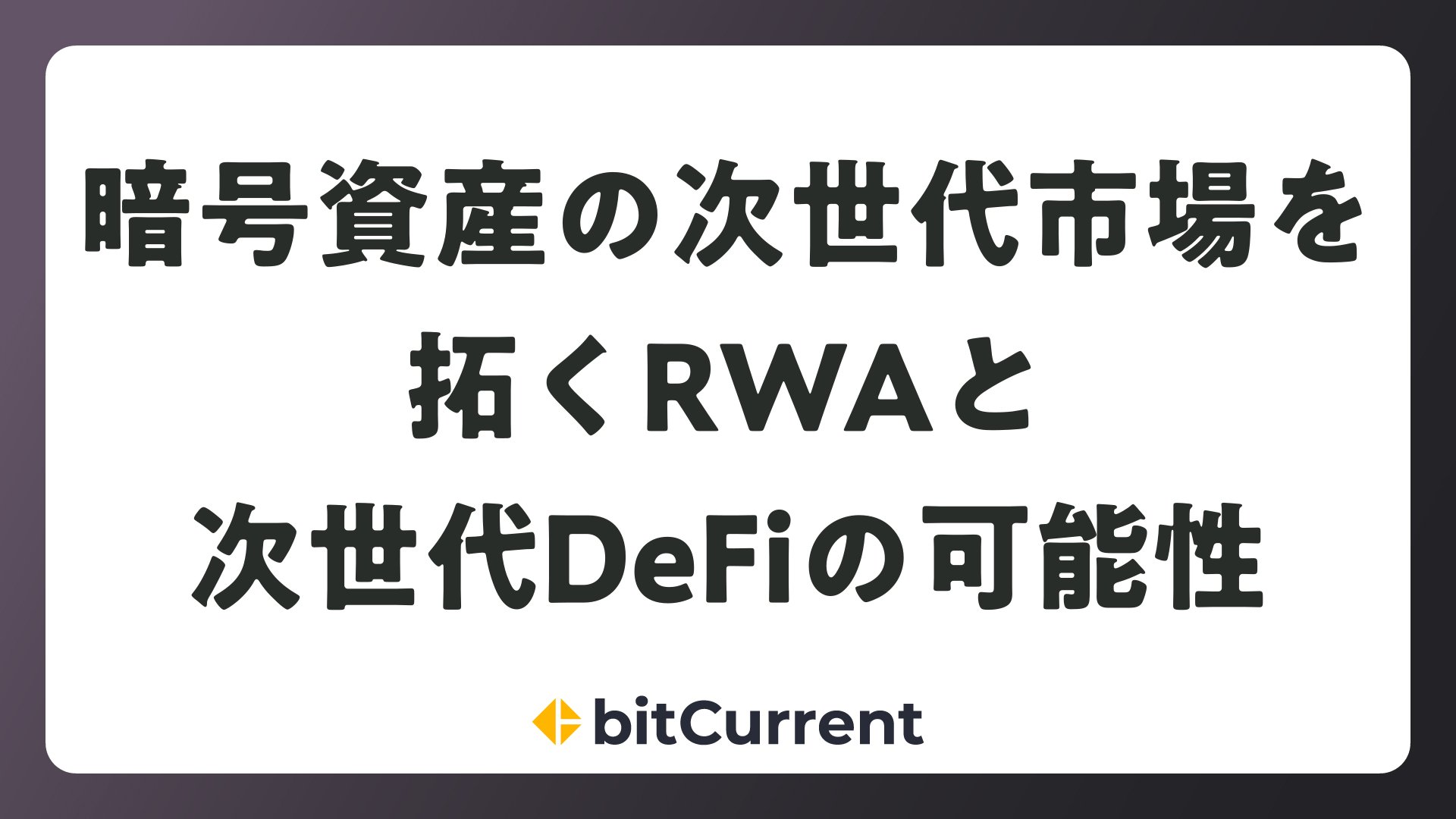 暗号資産の次世代市場を拓くRWAと次世代DeFiの可能性をまとめました