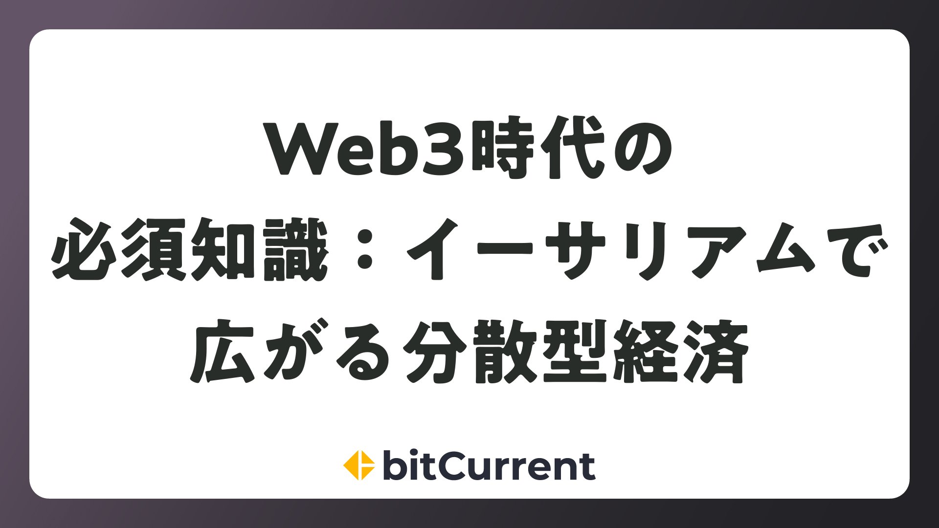 Web3時代の必須知識:イーサリアムで広がる分散型経済をまとめました