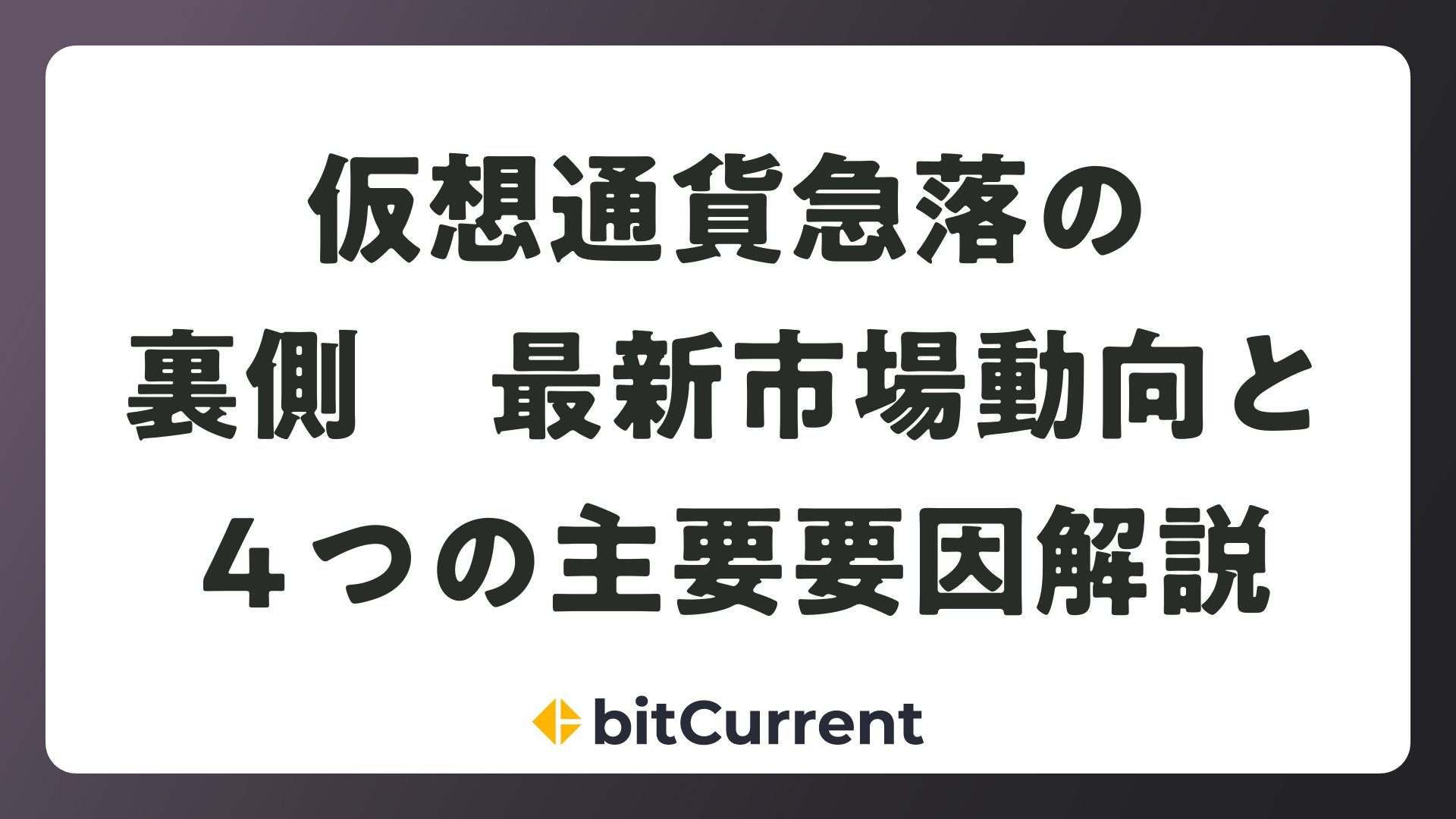 仮想通貨急落の裏側 最新市場動向と4つの主要要因解説をまとめました