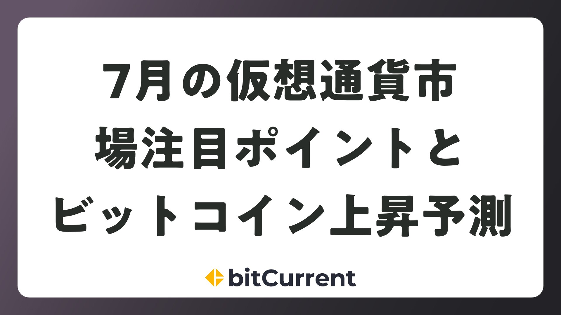 7月の仮想通貨市場注目ポイントとビットコイン上昇予測をまとめました