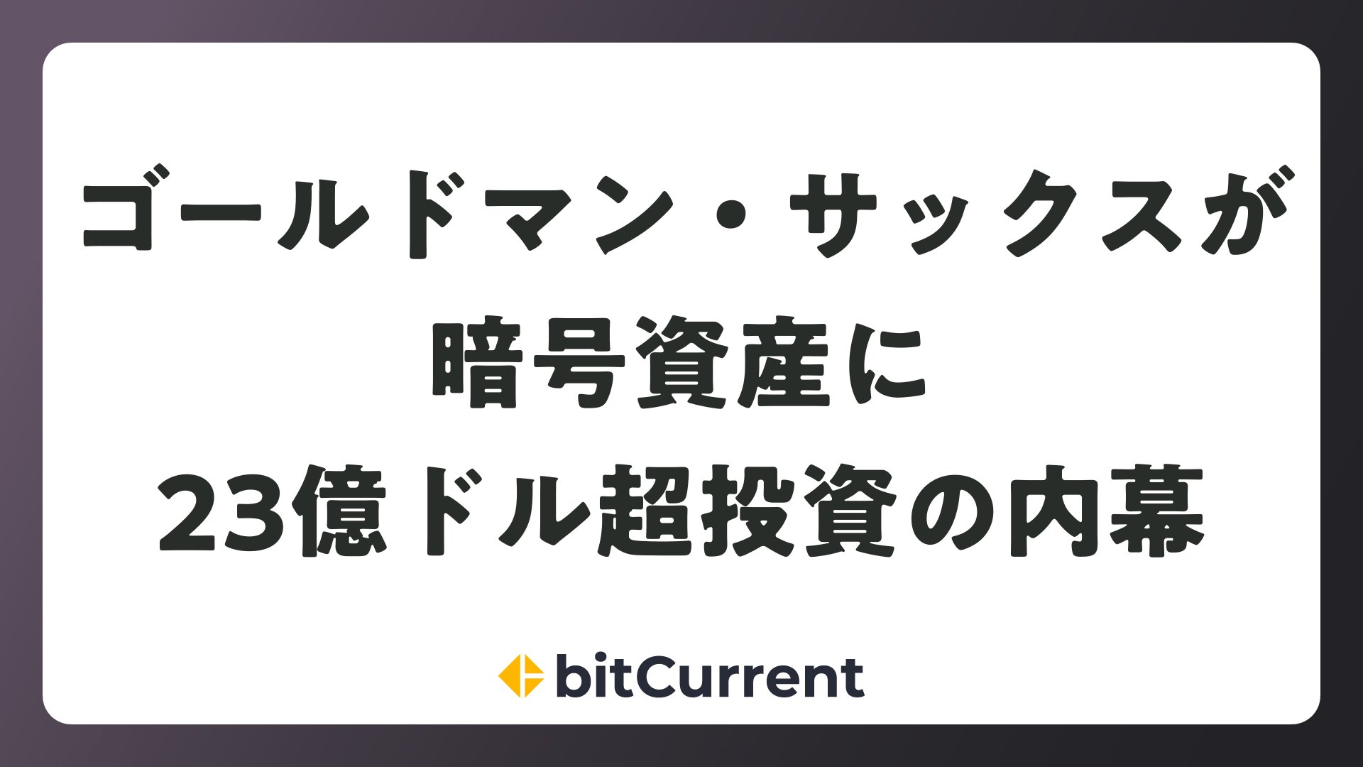 ゴールドマン・サックスが暗号資産に23億ドル超投資の内幕をまとめました